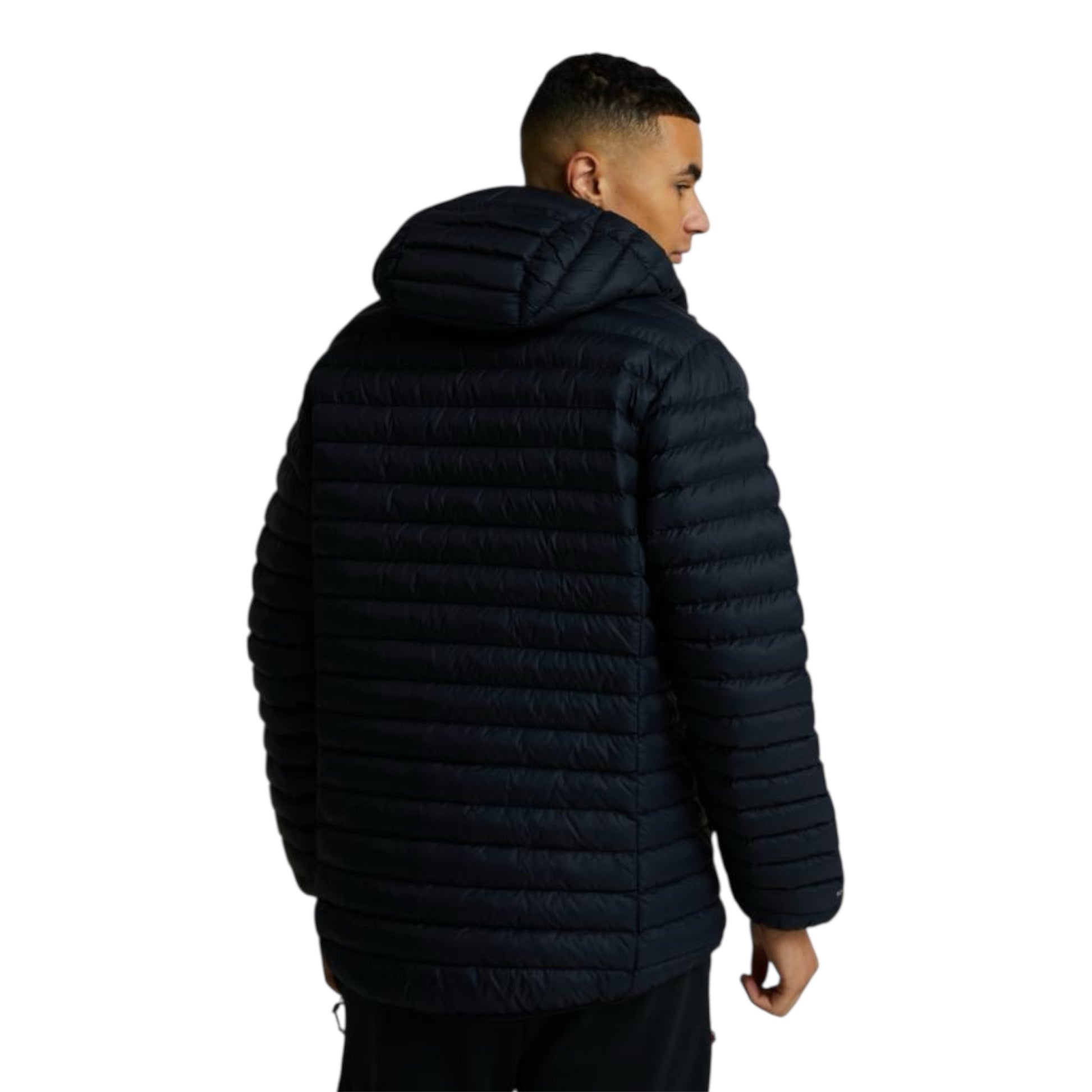 Berghaus Vaskye Jacket in Black. A superbly insulated hooded jacket that is perfect for keeping you warm in cold weather. Made with advanced synthetic Hydroloft® Polyball insulation and evenly spread micro baffle construction to provide warmth from morning until sunset. The Pertex®Quantum fabric stops the wind from blowing away your warmth, and the jacket is both warm and breathable for total comfort. Featuring a fully adjustable hood to keep you protected from the elements, and a soft chin guard to stop the zip from rubbing. The stretch bound hem and cuffs keep draughts out, and there are two concealed pockets to keep your essentials secure. This jacket is made with more than 50% recycled content, and all materials are PFC free