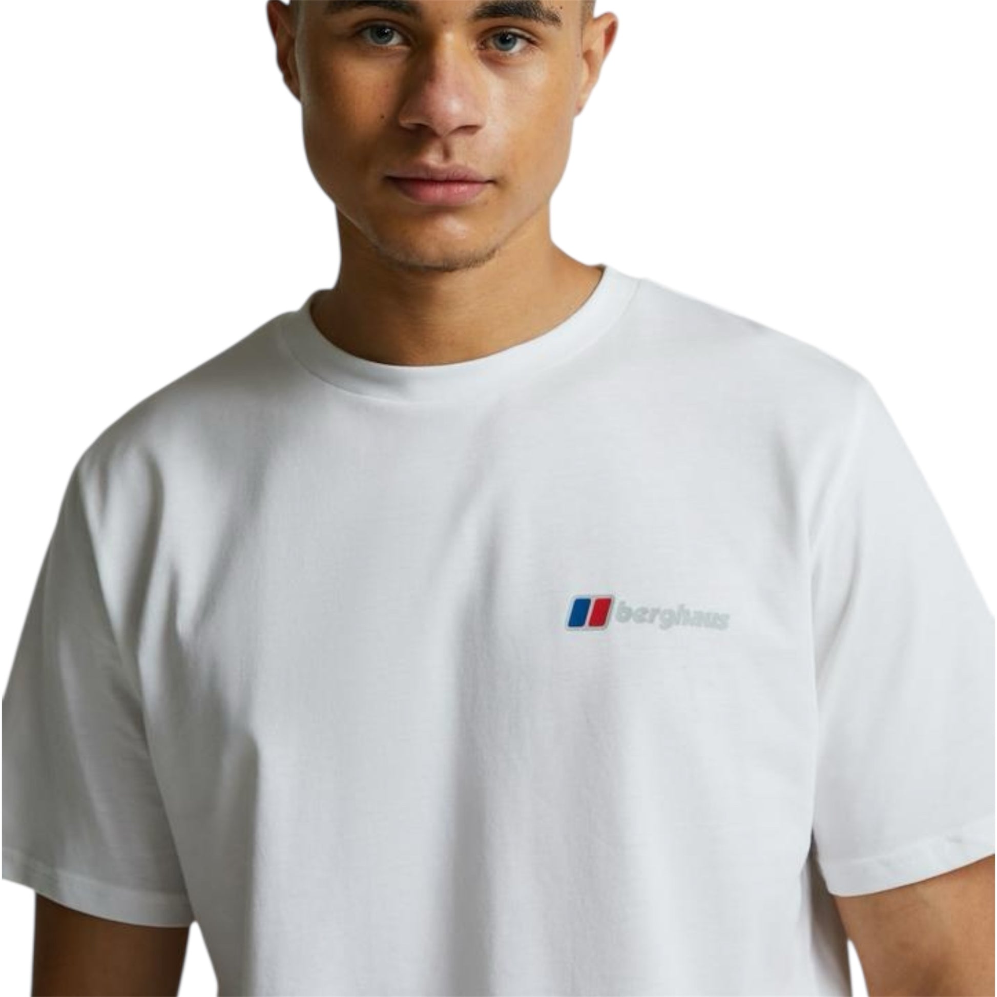 Berghaus Alpine Peak T-Shirt in White. The Alpine Peak Tee is a lightweight, everyday graphic T-shirt designed for clean comfort and easy style. Made from soft, breathable cotton, it offers a relaxed fit that works for training, travel, and day-to-day wear. The crisp white base is finished with a bold Alpine Peak graphic, giving it a fresh, outdoor-inspired look with signature Berghaus detail. Completed with a ribbed crew neck and durable stitching, this is the ideal tee for chilled days, layered fits, and effortless all-season style.